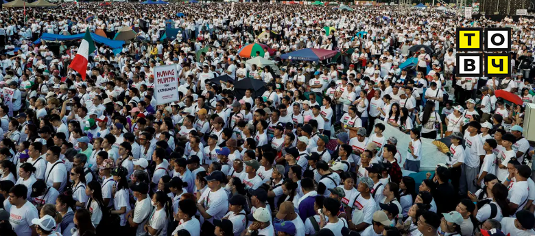 Филиппиний нийслэл Манила хотод үерээс хамгаалах байгууламжийг барихтай холбоотой луйврыг эсэргүүцэж буйгаа илэрхийлэхээр хэдэн зуун мянган хүн жагсжээ.