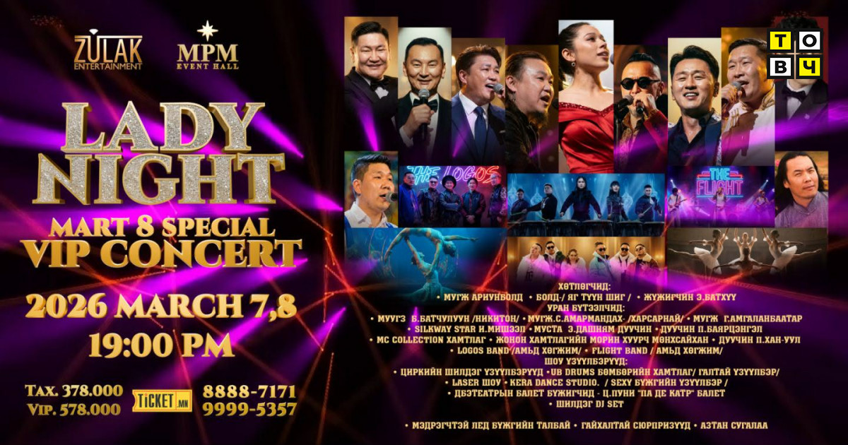 2026 оны 3-р сарын 7,8-ны орой… 19:00 цагаас… MPM Event Hall-д…