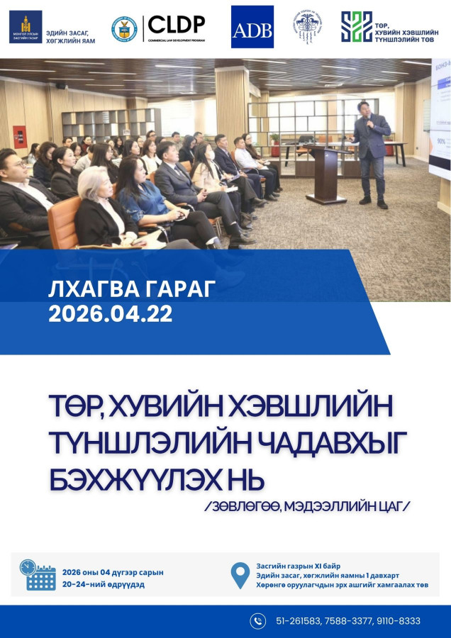 - Лхагва (04/22): ТХХТ-ийн чадавхыг бэхжүүлэх зөвлөгөө, мэдээллийн цаг.