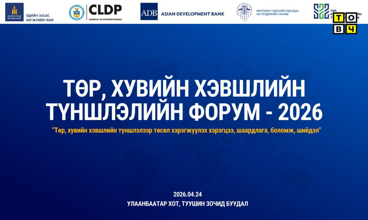 “Төр, хувийн хэвшлийн түншлэл – 2026” форум- Төсөл хөгжүүлэх, хэрэгцээ, шаардлага, боломж, шийдэл (04.24)